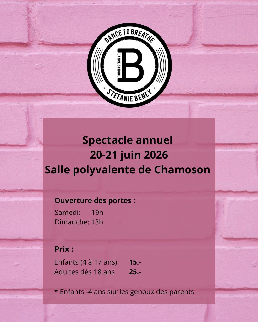 L’école B Dance School vous présente son spectacle annuel. 35 shows par des élèves de 4 à 50 ans passionnés pour 2h30 de pure danse urbaine!
