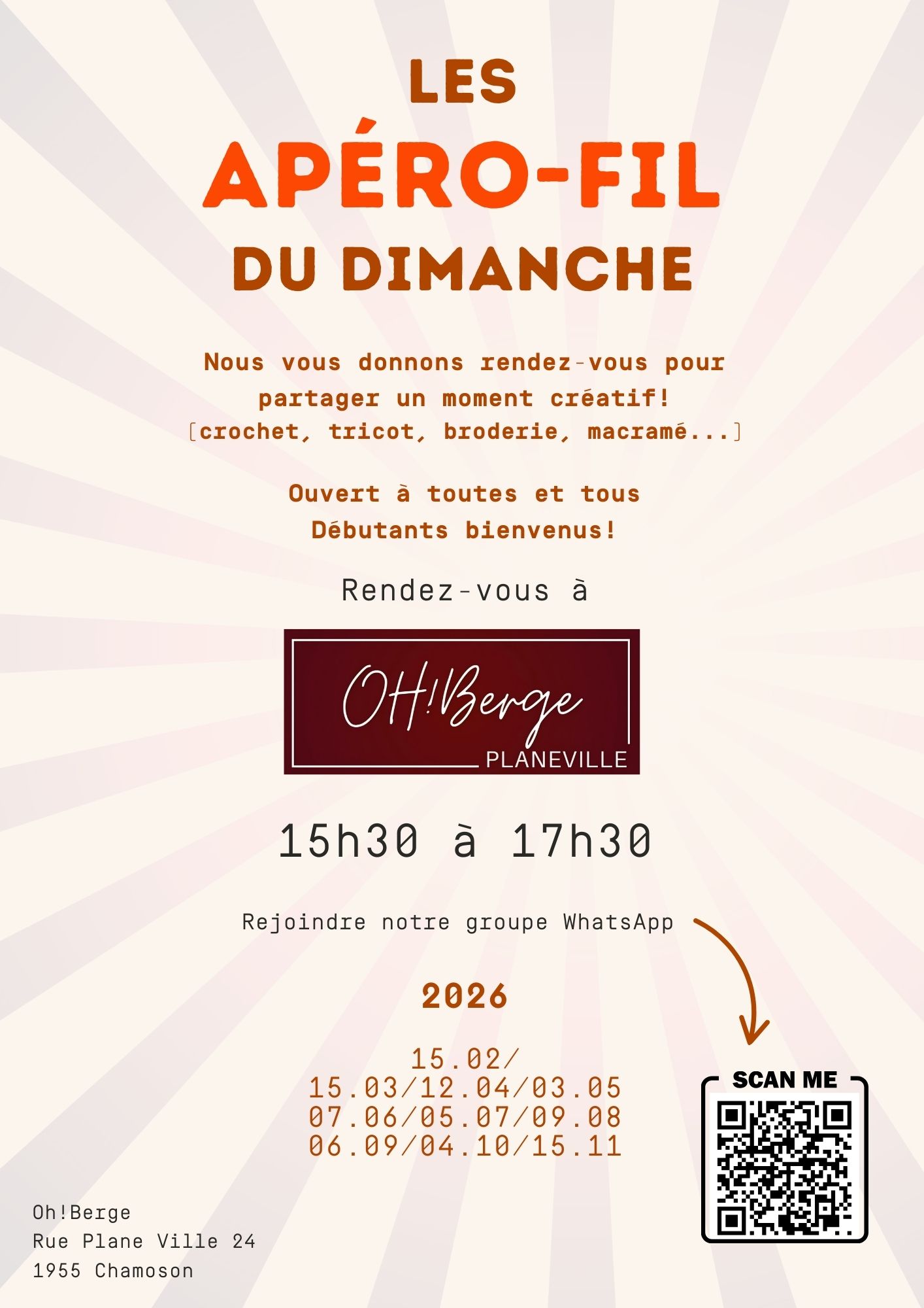 Rejoignez-nous avec votre ouvrage ou un projet qui vous fait vibrer : crochet, tricot, broderie, macramé… tout est bienvenu !