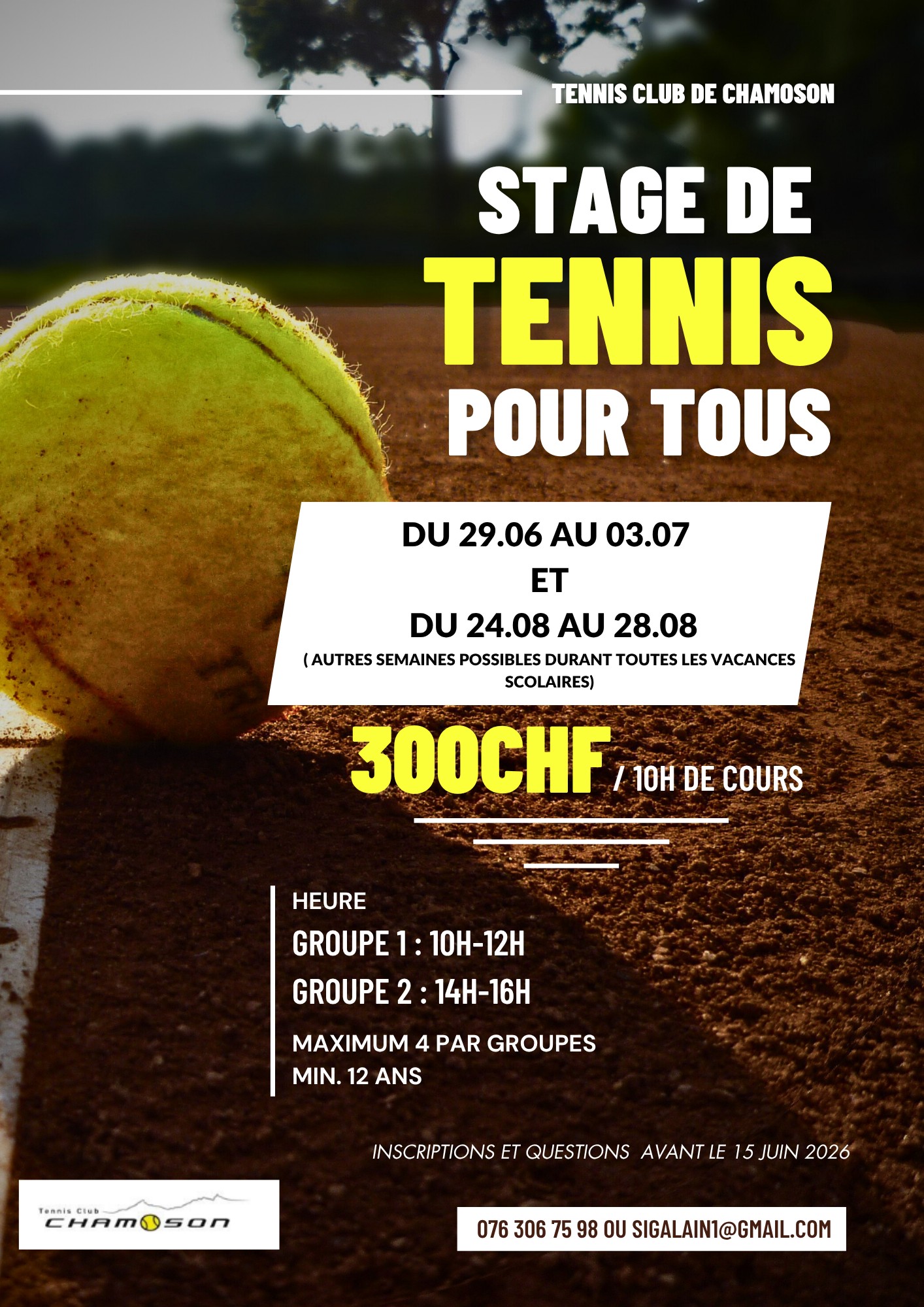 Inscriptions et questions avant le 15 juin au 076 306 75 98 ou sigalain1@gmail.com